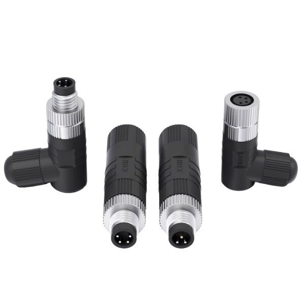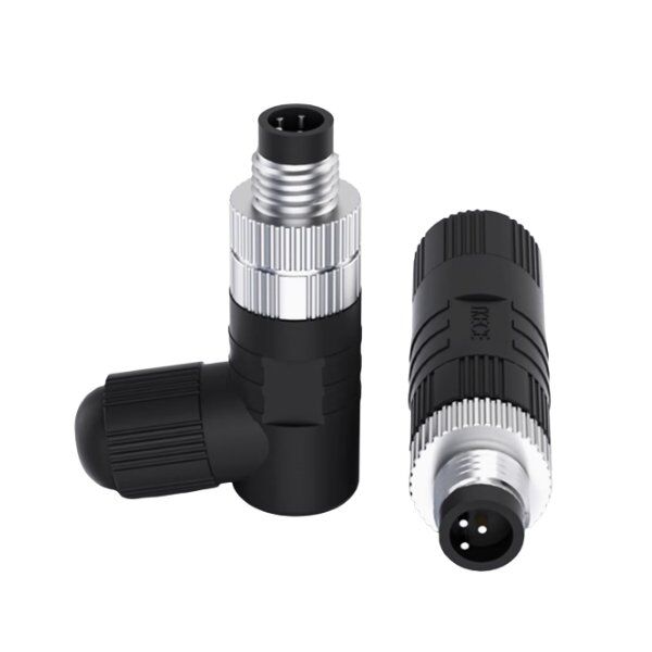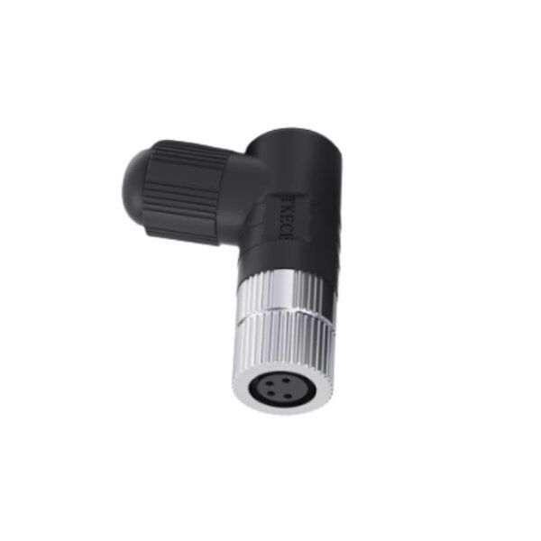 M12 connector-assembled 90° elbow plastic connector, adopts a 90° elbow design, saves installation space, is equipped with a screw locking structure and a plastic shell, and the internal contacts are brass nickel-plated. It has IP68 high-level protection capabilities and is suitable for harsh industrial environments. It supports multiple pin core options, and the connection is stable and reliable to meet the needs of efficient signal transmission