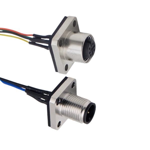 M12 connector-flange panel with wire connector is a high-reliability connection solution designed for industrial scenarios. It adopts flange panel design and is equipped with 4 independent screws to fix the panel. The screw locking design at the connection ensures the stability of signal transmission. Supports customization of welding cable length, color, and material, adapts to a variety of cable specifications, meets the electrical connection requirements under different working conditions, and has both installation convenience and flexible customization.