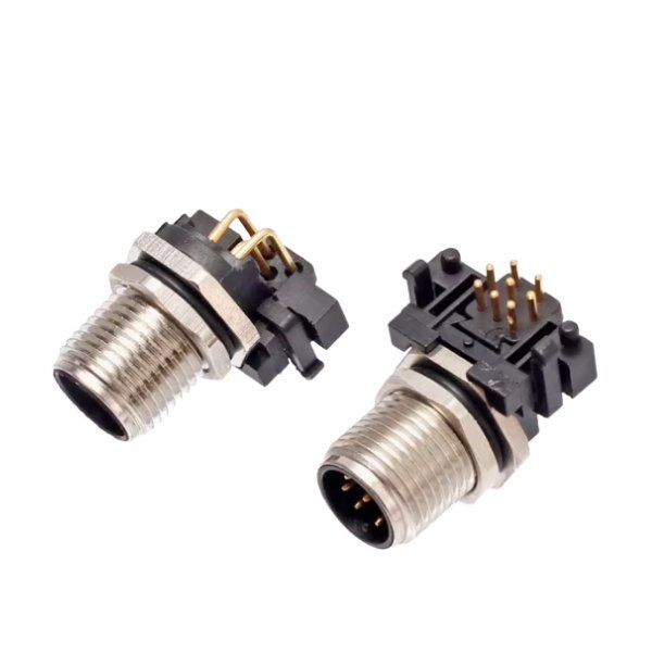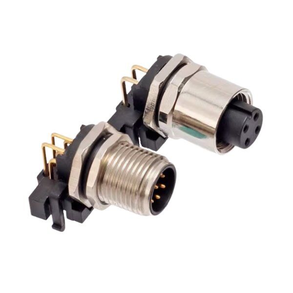 M12 connector-front lock bent pin plug-in connector is a high-performance industrial connector designed for small spaces. It adopts the front panel fixing and nut outer locking structure, and is equipped with the pin core bending process. It is easy to install and saves space. The screw locking at the connection ensures stability and durability. It is suitable for scenes such as industrial automation and equipment control, providing a reliable solution for cable connection.