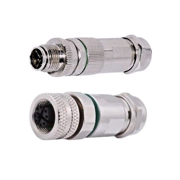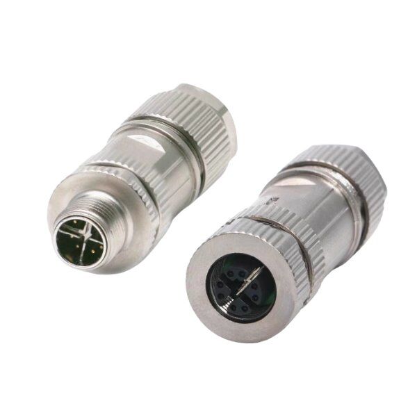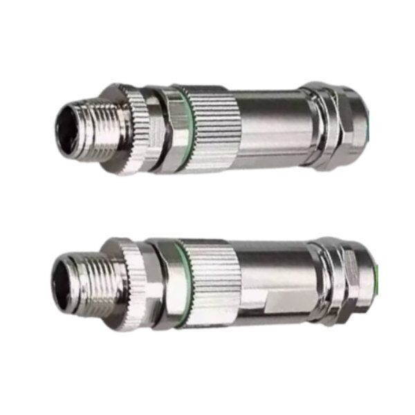 The connector is based on a circular metal shell and integrates multiple practical designs: the X-shaped assembly structure supports quick installation and disassembly, the wire crimping welding process ensures stable contact between the cables, and the screw locking at the connection further enhances the anti-vibration performance; the nickel-plated brass material not only improves the conductivity, but also enhances the weather resistance and corrosion resistance through surface treatment, and can calmly cope with harsh environments such as moisture and dust. The IP68 protection level can withstand immersion and high-pressure washing. The 8-pin X-shaped pinhole layout (symmetrical design of male and female pins) is compatible with mainstream industrial protocols, meets the needs of multi-channel signal/power mixed transmission, and is compatible with M12 standard threads (M12×1.0) and PG9 installation interfaces. It has strong compatibility and is suitable for integration of various types of equipment.