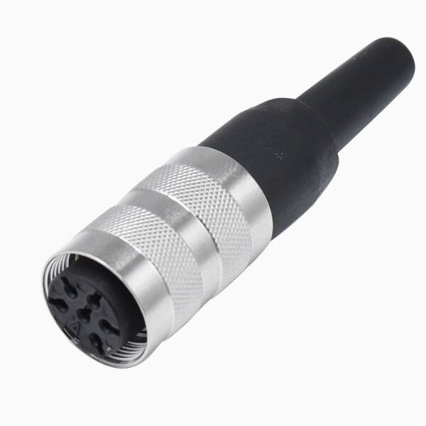 M16 connector-assembly sheath connector, with a circular brass nickel-plated metal shell, with waterproof and dustproof performance, with a plastic tail cap to protect the cable bending, and the connection nut is locked firmly. Supports flexible configuration of 3-24 pins, adapts to a variety of industrial scenarios, and provides reliable protection for equipment connection