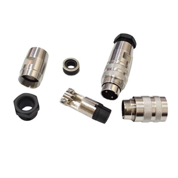 The M16 connector adopts a classic circular structure and supports both assembly and welding installation methods to meet the wiring needs of different scenarios. The main body is made of brass and the surface is treated with nickel plating to effectively resist harsh environments such as moisture and salt spray, extending the service life. The innovative waterproof wire clamp at the tail can tightly fix the cable to prevent it from loosening, and with the precision sealing structure, it can achieve IP67 waterproof and dustproof performance. The two models AB cover 3-12 pins and 12-24 pins, respectively, and are flexible in configuration, adapting to the signal transmission needs of multiple scenarios. It is easy to install and has a stable connection. It is an ideal choice for industrial automation, equipment control and other fields.