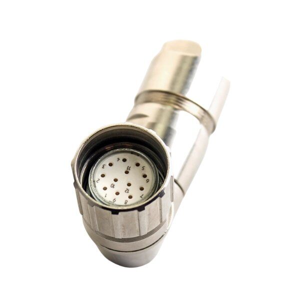 M23 elbow assembled welding connector is a high-performance connection product designed for industrial cable connection, with a 90° elbow structure to cope with special use environments. Adapt to the standard M23 interface, support nut tightening and tail wire clamp fixation, and have waterproof, dustproof and anti-shielding characteristics. The product provides 6-19 pin cores in various specifications to meet different signal transmission requirements, suitable for stable connection in harsh environments